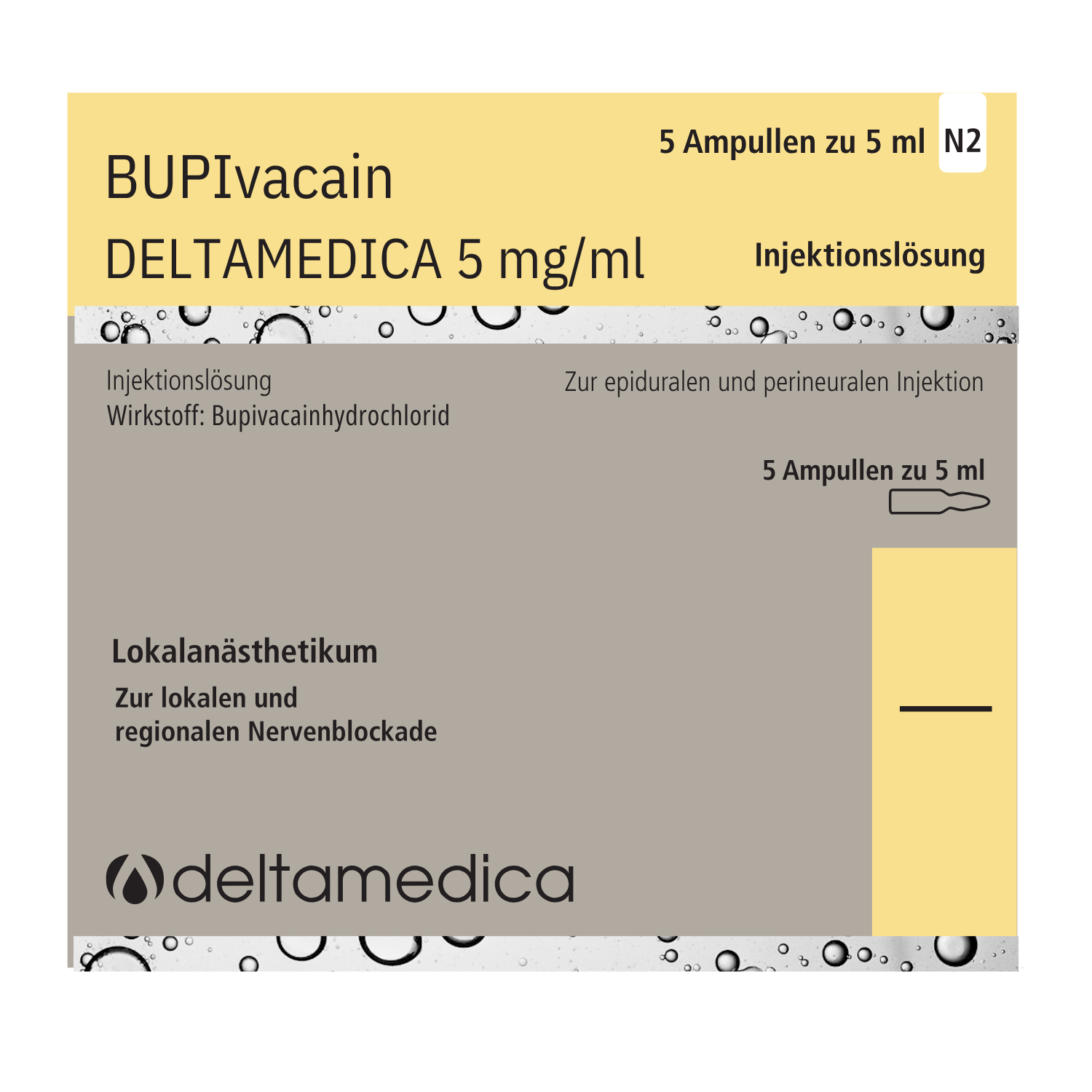 Vollständige Bezeichnung: Bupivacain DELTAMEDICA 5 mg/ml
