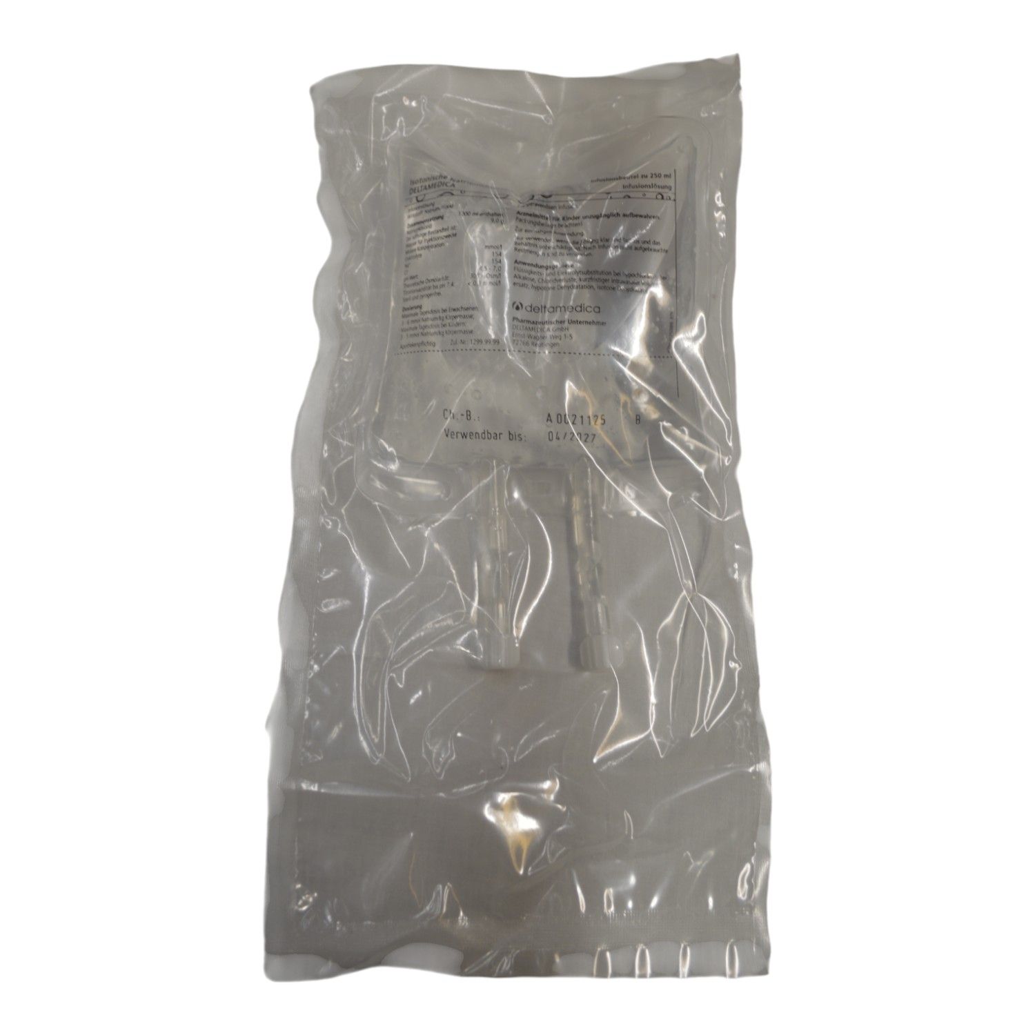 | 0.9% isotonic sodium chloride solution DELTAMEDICA | 32x250ml | PP bag | 06925957 | 2x Luer-Lock connector |