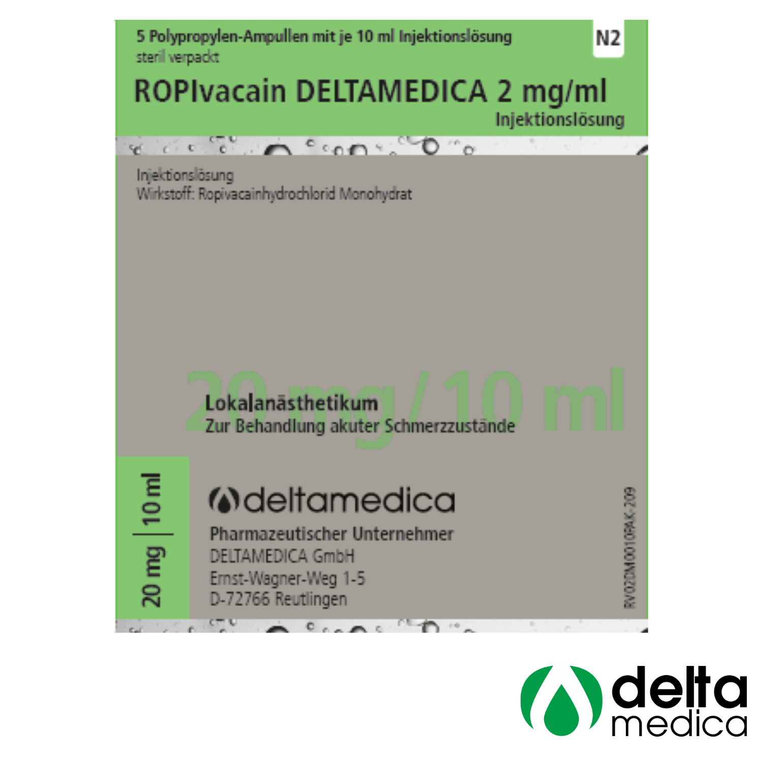 Vollständige Bezeichnung: Ropivacain DELTAMEDICA 2 mg/ml Injektionslösung