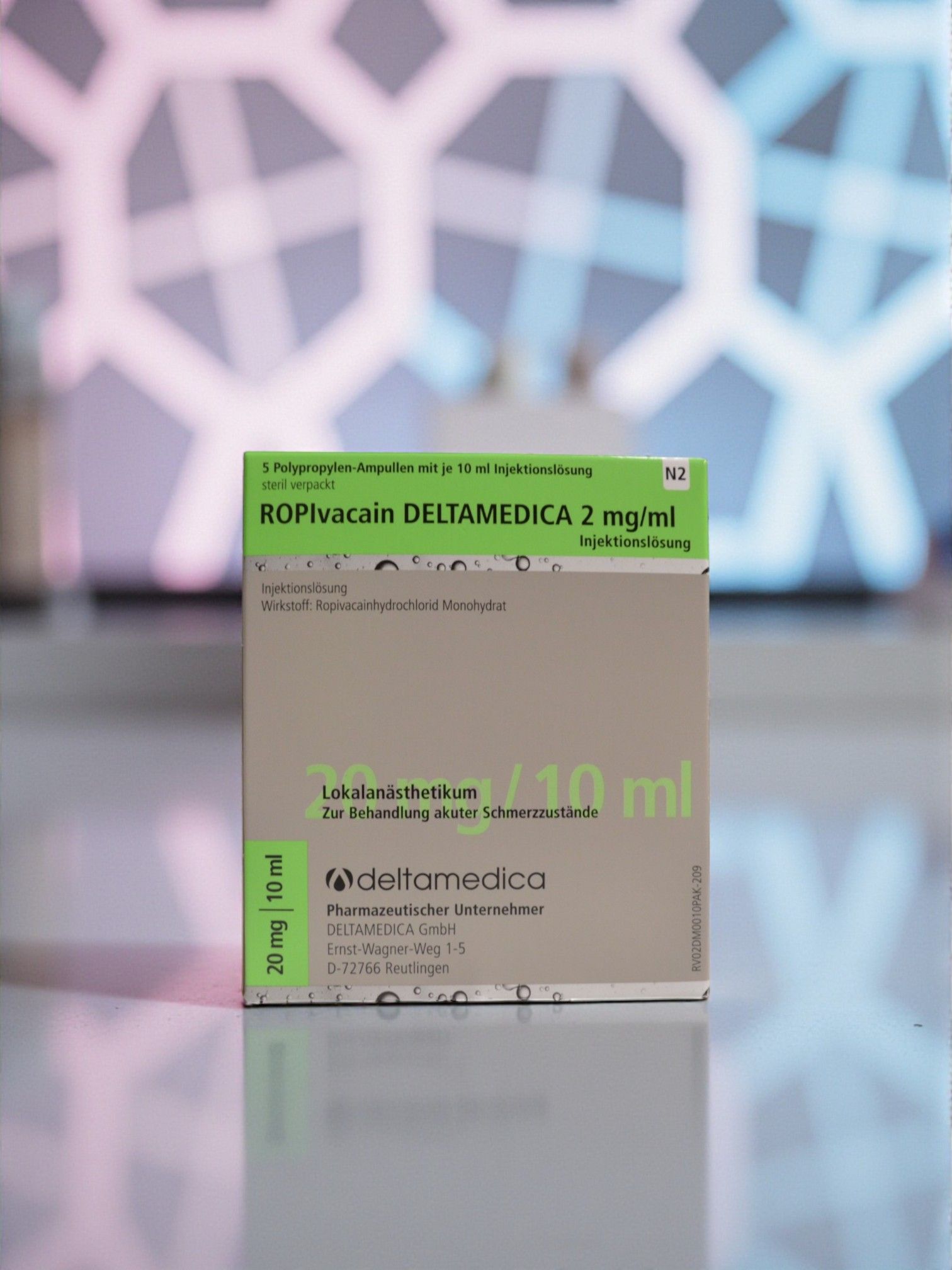 Ropivacain DELTAMEDICA 2 mg/ml Injektionslösung ist eine sterile, gebrauchsfertige Lösung zur Behandlung akuter Schmerzzustände und zur Regionalanästhesie bei Erwachsenen, Jugendlichen ab 12 Jahren und Kindern ab 1 Jahr. Das Amidtyp-Lokalanästhetikum mit langer Wirkdauer zeichnet sich durch raschen Wirkungseintritt, ausgeprägten sensomotorischen Trennungseffekt mit begrenzter motorischer Blockade, kardiovaskuläre Stabilität und flexible Dosierungsoptionen aus. Mit etablierten Konzepten für Epiduralanalgesie (Bolus und kontinuierliche Infusion), periphere Nervenblockaden, Leitungsanästhesie und Infiltrationsverfahren bietet es eine zuverlässige Lösung für Akutschmerztherapie und perioperative Schmerzbehandlung.